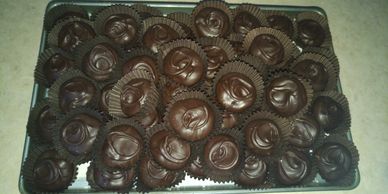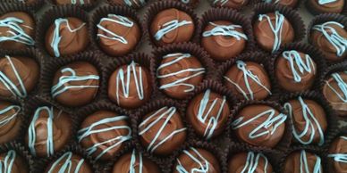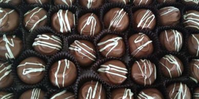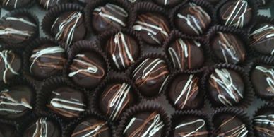 Our truffles here at Walker's Candies, are made right from scratch. We first make the mixture, cut and roll them, then dip them. After that, we package them in all sorts of sizes, ranging from 1 to 48 truffles. There are 18 different flavours of truffles. You can purchase them in boxes or in bulk. 6 PIECES OF CHOCOLATE TRUFFLE 10.99. 12 PCS. $21.99. 24 PCS. $41.99. 32 PCS. $54.99.